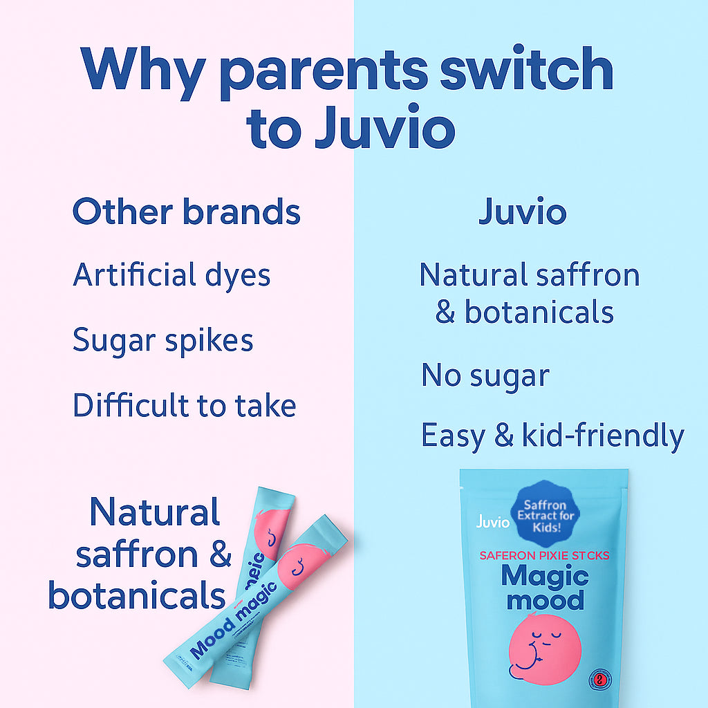 Yes. Juvio is made with natural ingredients like saffron, magnesium, and calming botanicals. It’s non-habit-forming, drug-free, and pediatrician recommended.